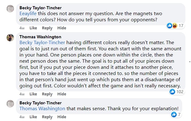 Each player, with 10 magnets, takes turns placing magnets in the battle circle without letting the magnets connect to get rid of the magnets,