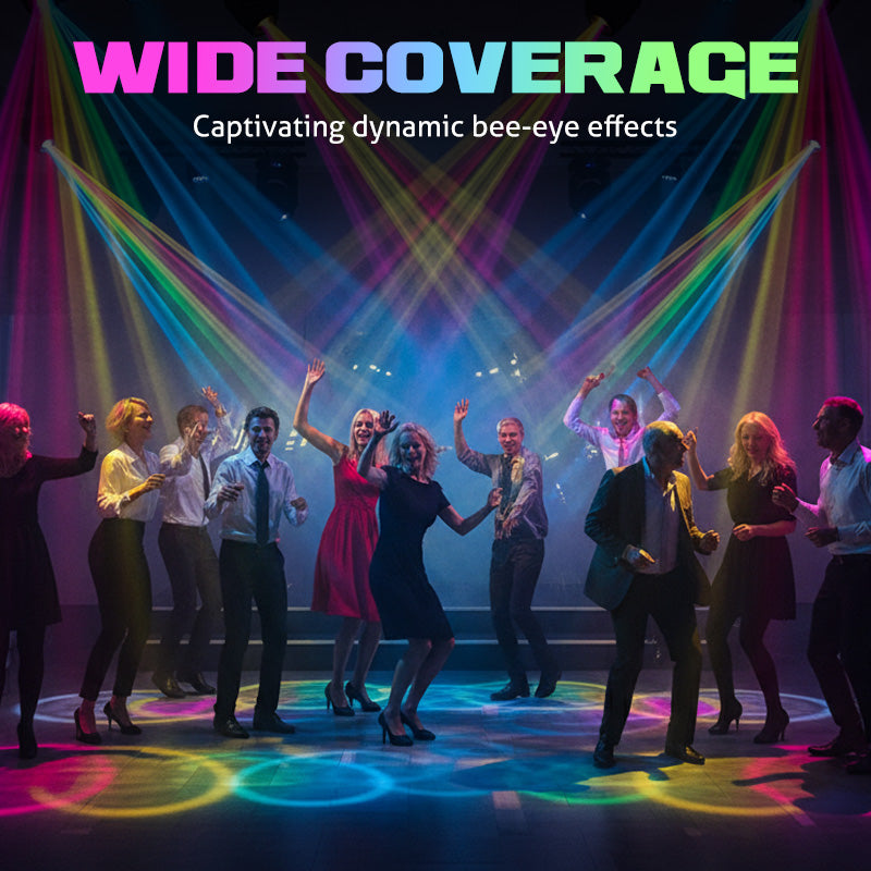 INTEGRATED BEE-EYE LENS - The central bee-eye lens produces a mesmerizing wash effect with multiple sharp beams. It adds depth and complexity to your lighting setup, delivering professional-grade visuals for stages, clubs, and parties.