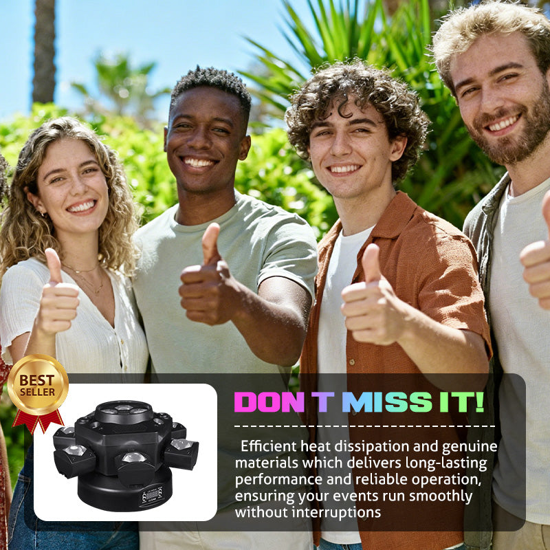 DYNAMIC SIX-ARM DESIGNĀ - Features six independently moving arms, each projecting a powerful beam. This creates stunning, room-filling effects and energetic light shows that captivate any audience, enhancing the atmosphere of your event.