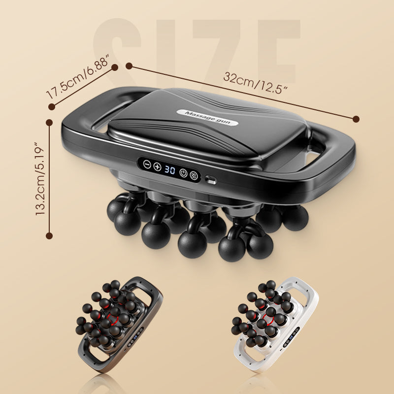20-HEAD MATRIX DESIGN - Delivers extensive coverage and high-frequency percussive therapy to large muscle groups simultaneously. This efficient design penetrates deep tissue, effectively relieving soreness and tension across your back, shoulders, and legs.